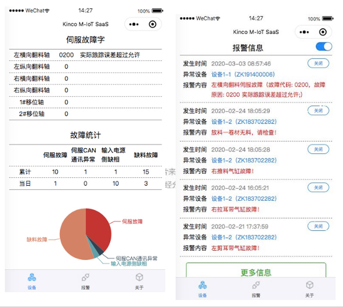 步科口罩機Plus方案,在CANopen總線伺服驅動產品基礎上,迅速升級M-IoT物聯網遠程運維服務,快速完善了設備報警和維護信息,增加了遠程診斷服務功能,進一步打通了現場、設備商和部件商的溝通渠道,幫助現場人員快速排查故障。