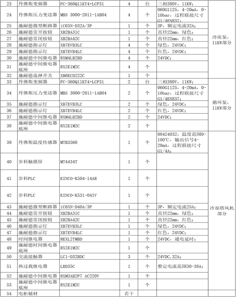 該系統設計之初,均沒有考慮冷卻泵、冷凍泵、循環泵采用變頻控制(如下表1),而是采用傳統的星三角啟動方式(舊電柜見下圖1),根據對系統運行工藝的觀察,泵總功率110.5KW,電能浪費嚴重,存在較大的節能空間。