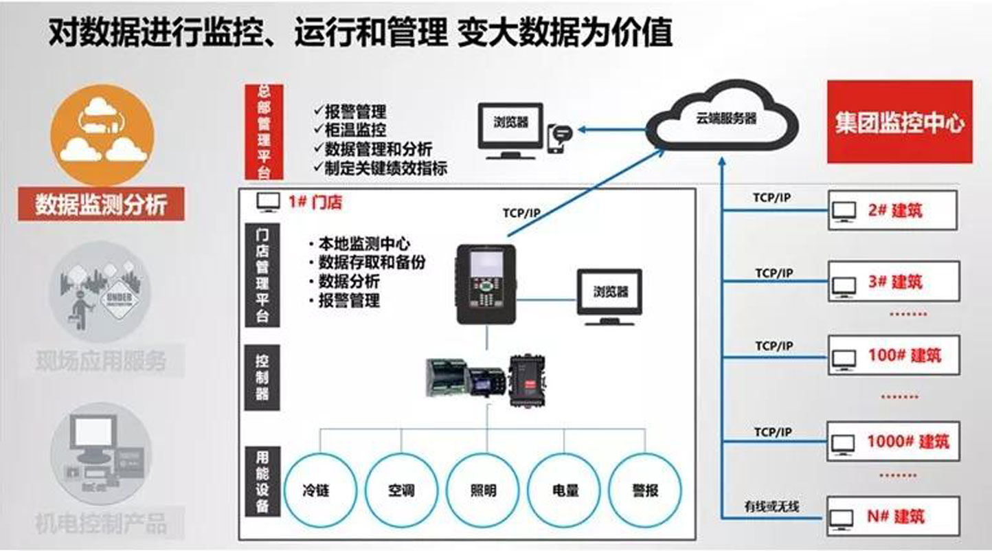 這些自動控制解決方案集成了物聯網功能,通過有線和無線的方式集中控制暖通空調、制冷、照明等設備,實現統一的能源管理,能夠極大地優化設備管理,降低能源支出,讓商業樓宇和食品超市實現綠色環保的可持續發展。