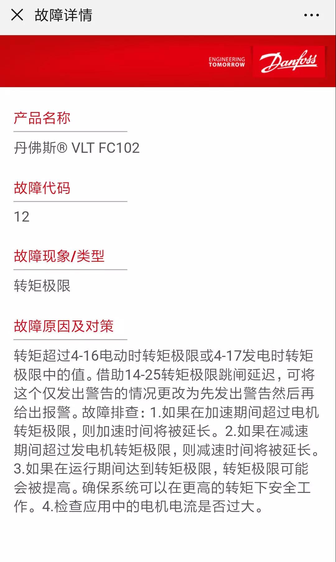 以上就是丹佛斯傳動全新的故障速查系統(tǒng),我們希望,通過新版的故障速查系統(tǒng),能更好得與客戶拉近距離,為大家提供有效、優(yōu)質(zhì)的服務(wù)。