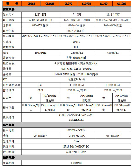 GL系列是Green系列旗下的經(jīng)濟(jì)型系列,目前推出3個尺寸:4.3"、7"、10.1",型號分別是 GL043、GL043E、GL070、GL070E、GL100E,GL系列是Green系列旗下的經(jīng)濟(jì)型系列,準(zhǔn)確地提供了人機(jī)界面的標(biāo)準(zhǔn)功能,經(jīng)濟(jì)實(shí)用,具備高性價比,是您設(shè)備配置的首選型號。
