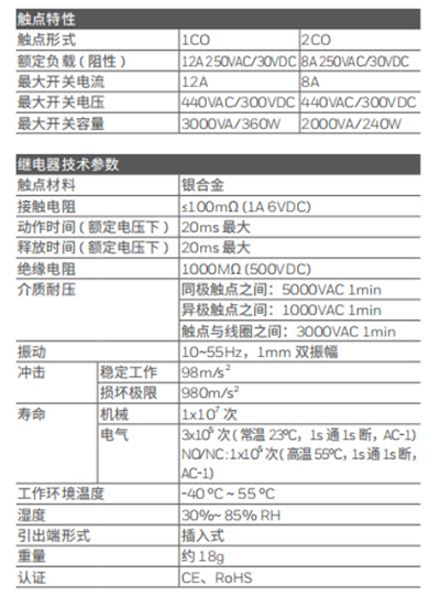 2.超大電流,1CO 觸點達 12A,2CO 觸點可達 8A