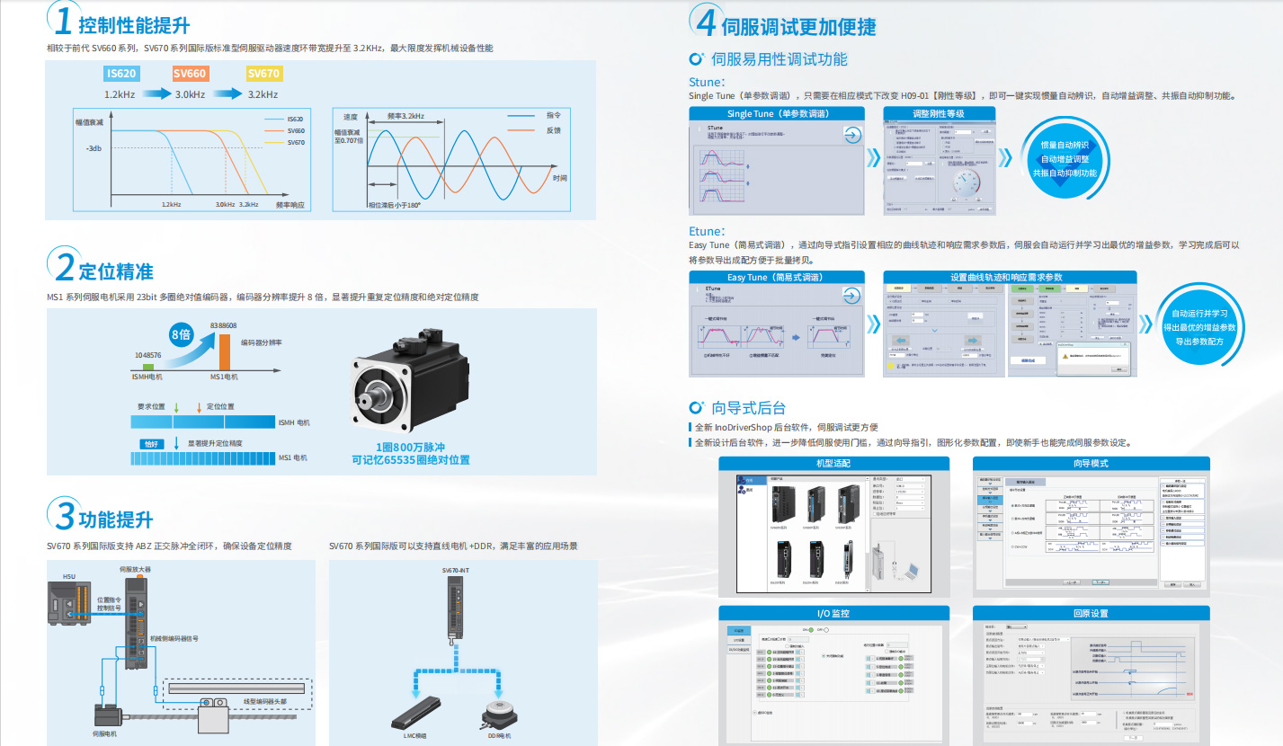 SV670 系列國際版標準型伺服驅動器適用于電子制造、鋰電、機械手、包裝、 機床等行業的自動化設備,以高性能方案實現快速精確的位置控制、速度控制和轉矩控制。